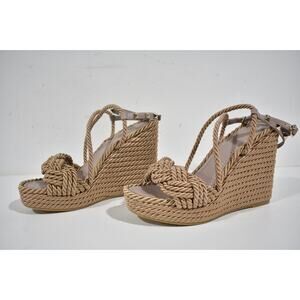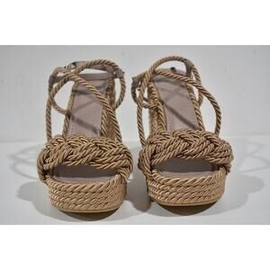 Valentino Rockstud Torchon Poudre Nude Cord Rope Wedge Ankle Strap Sandal 41