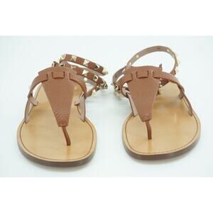 Valentino Rockstud brown Leather Ankle Strap Flat Thong Sandals Size 36 NIB $895