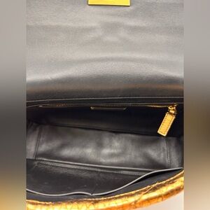 Crafted in authentic exotic python skin, this bag is both lightweight and structured, with a gleaming finish that captures the light from every angle. The gold-tone chain strap allows for both shoulder or crossbody wear, making it versatile for both evening and statement daytime looks.