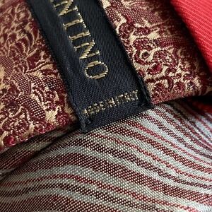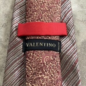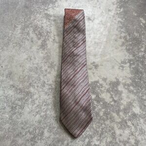 Valentino Silk Mens Neck Tie Made in Italy Striped Geometric Print Red Brown.