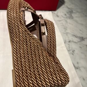 Authentic VALENTINO GARAVANI Calfskin Silk Rockstud 95MM "Torchon" Slide Espadrille Wedge - Size 39EU/9US, 4" heel in Poudre