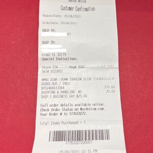 -Purchased on Poshmark, see original receipt in photos from Nordstrom Santa Anita