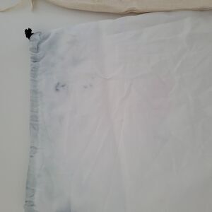 Condition is pre-owned, white one has some stains near Drawstring, minor wear, overall good condition.