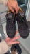 Black suede, black camo nylon, white and black rubber tread, gold-tone rock-stud accents, lace-up, round toe