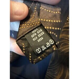 Valentino men's 100 percent silk tie, made in Italy. Brown and bronze design. Very good preowned condition with 3 small areas of very minor and hard to spot discoloration. Please see all photos for closeups. measures approximately 3.75" at widest and approximately 59" from end to end.