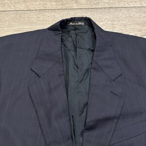 Valentino Uomo Virgin Wool Blazer Jacket Italy Navy Blue Pinstripe Mens 42L Suit