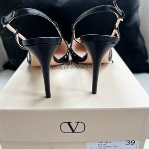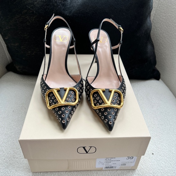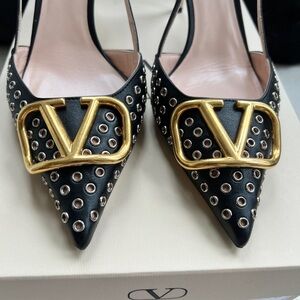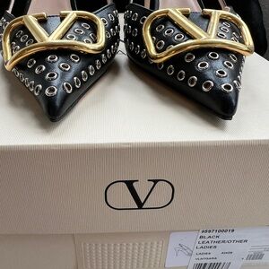 Valentino V Logo Perforated Black and Gold Women's Shoes sz 39