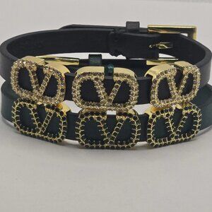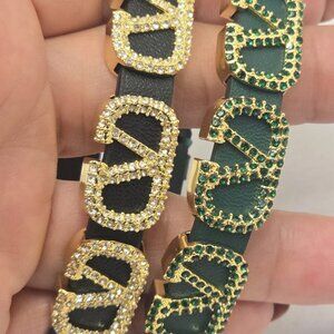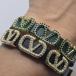 This listing is for only 1 Valentino V Logo Signature Leather Bracelet in Black or Green with Crystals. Valentino Red duster bag included. Please let me know which color you would like after payment is complete. Thank you!