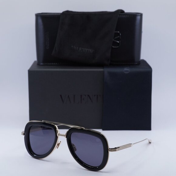 Valentino V-LSTORY VLS-129A Aviator Sunglasses - Shiny Black/Grey