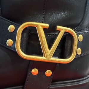 Valentino Garavani calf leather moto booties with V logo harness accent