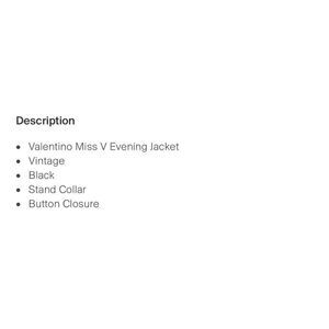 Valentino Vintage Authentic Solid Black Long Sleeve Button Down Jacket Medium.