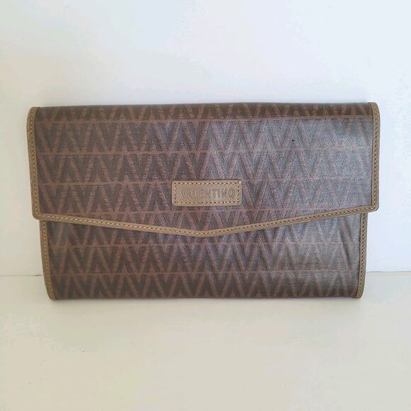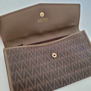 Valentino Vintage Bifold Logo Brown Wallet Large Vintage Envelope Italian Retro