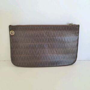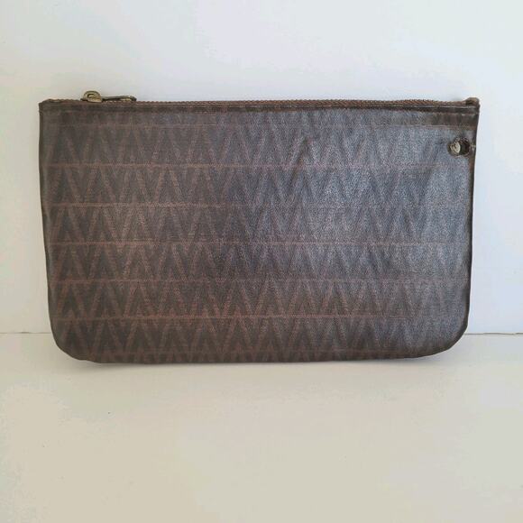 Valentino Vintage Pouch Wallet Zip Clutch Designer 7x4 Designer Brown Logo