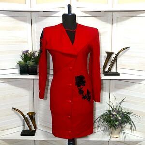 #ItalianDesigner #VintageDress #RedDress #LongSleeves #HolidayDress #Christmas #Valentines #NYE #VegasNight #DateNight #Gala #Ball #Photoshoot #RedBlazerDress #EuropeanDesigner #Retro #50s #60s #70s #80s #90s #EveningWear #FormalWear #BlackTieEvent #DesignerDress #LittleRedDress