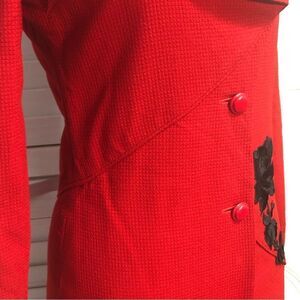 Valentino vintage red blazer dress made in Italy with 3D black rose appliqués, size 6.