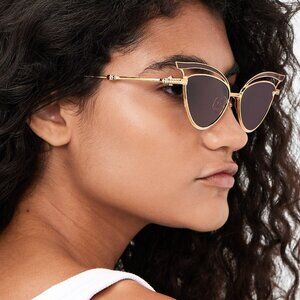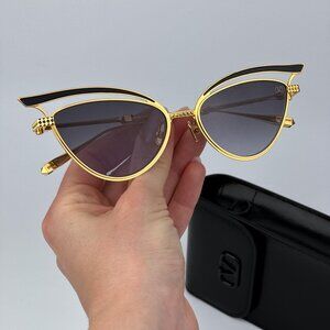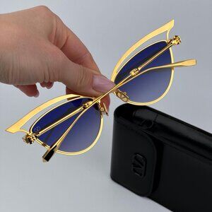 Valentino Women BRAND NEW Sunglasses Titanium Gold Grey Cat Eye V - GLASSLINER