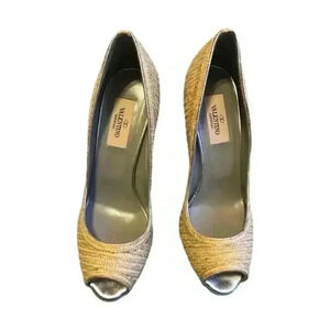 Valentino Women's Peep Toe Platform Pumps Brown Size 5.5 Formal Heels