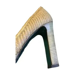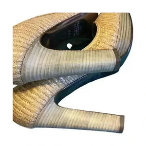 Keywords: Valentino heels, platform heels, raffia shoes, straw heels, peep toe, ultra-high heels, formal shoes, summer footwear, women's fashion, brown heels, elegant shoes, party shoes, wedding shoes, gala footwear, stylish heels.