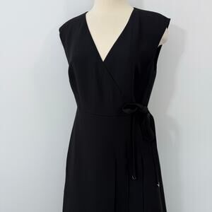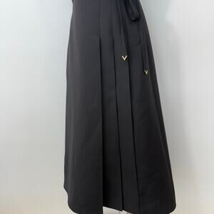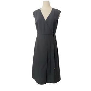 Valentino Wrap Effect Midi Dress Wool and Silk Black 46 (US 10) NWT