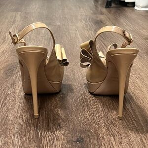 Valentino nude tan slingback bow peep toe high heels 120mm platform stiletto