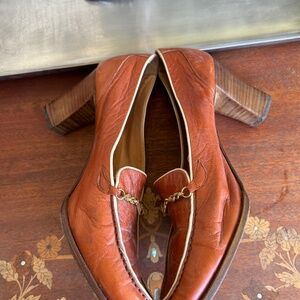 Rare vintage Valentino heels with what we think is 14k gold chain emblem V