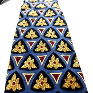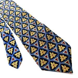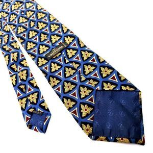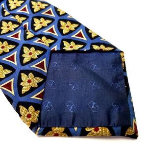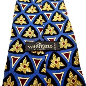 Valentino Blue & Beige Silk Tie Woven Wide Geometric