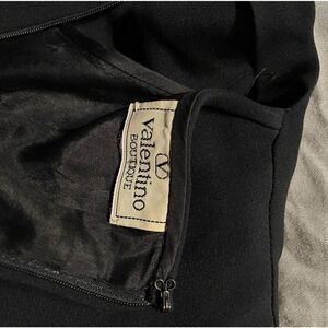 Elevate your wardrobe with this authentic Valentino Boutique vintage midi dress. The solid black sheath dress with long sleeves is perfect for any occasion. The dress is made with high-quality materials ensuring durability and comfort while wearing. The dress has a size of 4 and is designed for women. Perfect for those who want to make a statement with their attire. The dress is perfect for formal events or for a night out on the town.