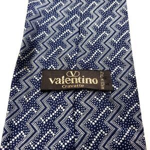 Valentino Cravatte Blue Abstract Woven Short Silk Tie