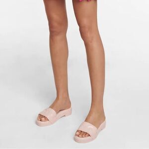Sculpted PVC updates these heeled mules, designed with logo detailing for elevated poolside style.