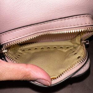 Peek inside to find a clean, roomy space for your belongings. Despite its compact size (6”W x 8”H × 3”D), it is quite practical. The handle drop is a comfortable 1” and it comes with an adjustable strap drop of 8-12”, providing versatile carrying options.