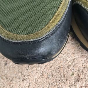 Not me not perfect but still very good so please check out the pictures. Size is barely visible but they are a men’s 38. I wear ladies tan and they fit but they’re a little short so maybe a ladies 9 1/2. The two front toe pieces need a minuscule drop of glue and the right sole has a small burn that I show in pictures.