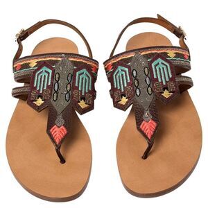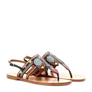 Valentino Kilim Embroidered Thong Slingback Sandals EU 37 US 7 Boho Flat Casual