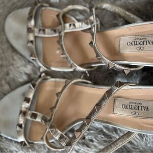 Valentino ROCKSTUD heels METALLIC shoes CALFSKIN LEATHER SLIDE SANDAL logo