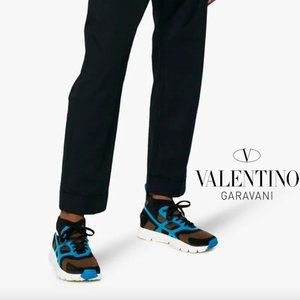 Valentino Garavani Rockstud Sound High Knitted Sneaker Black Brown Blue