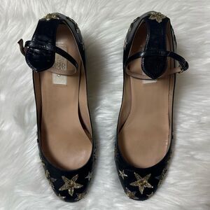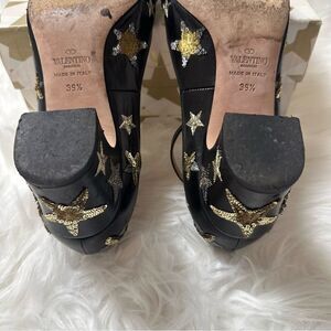 Valentino ‘Tango’ Heels embroidered star ankle strap heels. Signs of wear on heel and soles as shown in photos. Insole coming up on right foot as shown in photo.