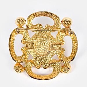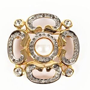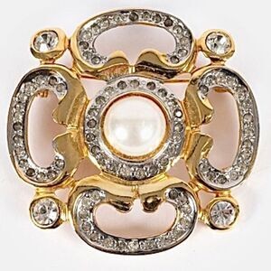 Valentino Vintage Gold Brooch w/ Crystal & Pearl Detail Pristine