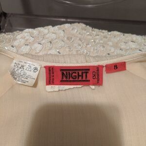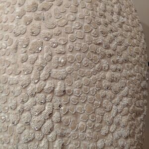 High quality linen-like bodice with a very intricate beaded skirt and matching belt. The pic really doesn't do it justice. The dress has some weight to it.