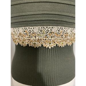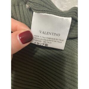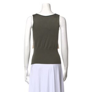 Valentino Womens Olive Green Beige Lace V Neck Sweater Tank Top 40 Small Italy. Measurements in inches. Smoke and pet free home. Fast shipping. Light mark as shown in photo. Barely noticeable. Soft stretchy material.
