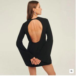 Open back mini dress with 70s inspired bell sleeves - size SMALL, NWT