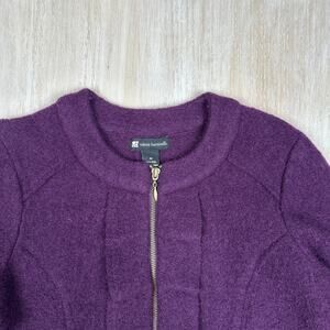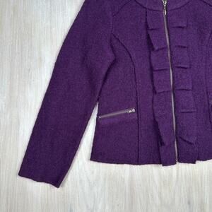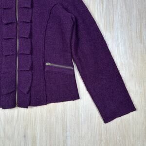 Valerie Bertinelli 100% Wool Purple Ruffle Chic Elegant Cozy Zip Jacket Medium