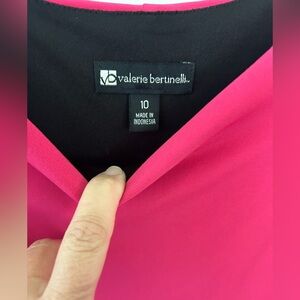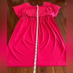 This stunning pink mini dress by Valerie Bertinelli is perfect for a cocktail night out. Featuring a chic dolman sleeve and a classic crew neck, it offers a sleek sheath silhouette that flatters the figure. The vibrant color and elegant design make it a standout choice for any evening occasion. A black upper lining covers the body. No lining below the elastic waistband. Easy and flattering dress! Excellent condition and never worn! Smoke and pet free home. I ship fast!