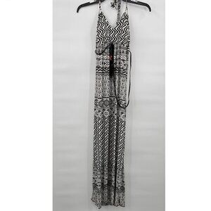 Valerie Bertinelli Women Black Sleeveless Open Back Aztec Maxi Dress Size 8