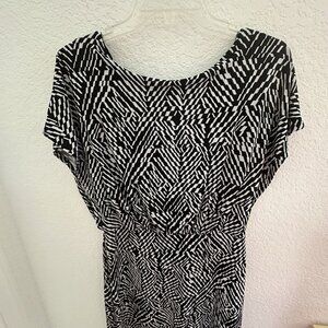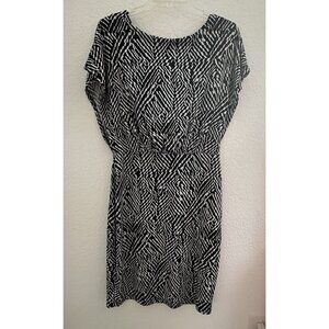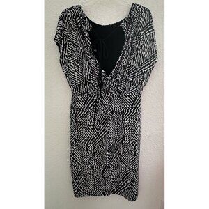 Valerie Bertinelli Women's Sheath Dress 10 Black Geometric Open Back S/S Party