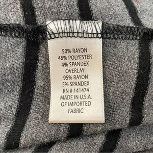 Valerie Bertinelli Short Sleeve Striped Flowy Tee. Scoop neck. Gray and black with small accent pink pocket on chest. Loose fitting. Good, gently worn condition.
