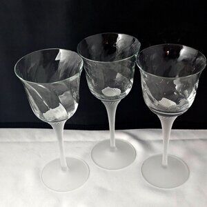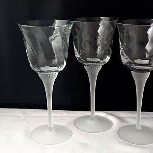 Valerie Frosted Wine Glass 8" set-3 Crystal Clear 8oz optic swirl satin stem