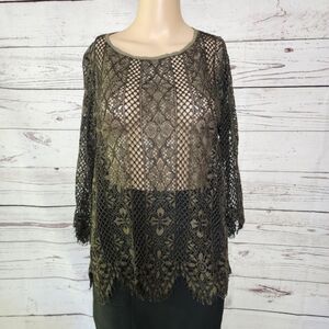 Valerie Khalfon Paris Green Sheer Lace Shirt EU 42