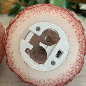 Valerie Parr Hill pair of 2 red Lighted Christmas Ornaments Illuminated XMAS Globes table toppers table ornaments glowing Christmas ornaments,