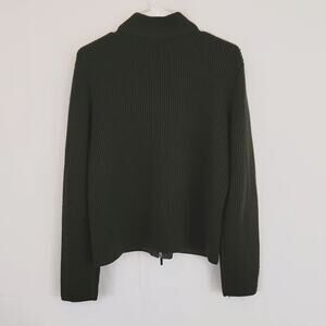 Valerie Seperates Forest Green Leather & Merino Wool Blend Sweater LG Front Zip