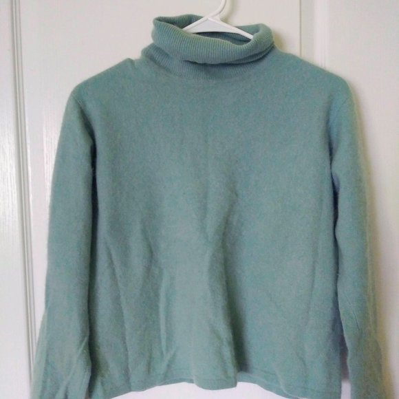 Valerie Stevens 100% 2-Ply Cashmere Turtleneck Dusty Turquoise Size L