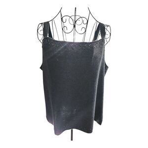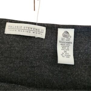 Keywords: merino wool, woolmark, knitwear, sweater, cardigan, tank top, beaded, beading, Valerie Stevens, cozy, layering, elegant, gray, 2X, plus size, two piece set, matching set